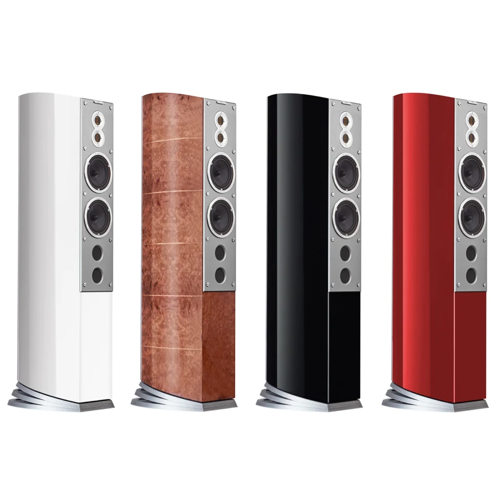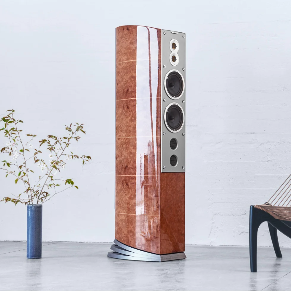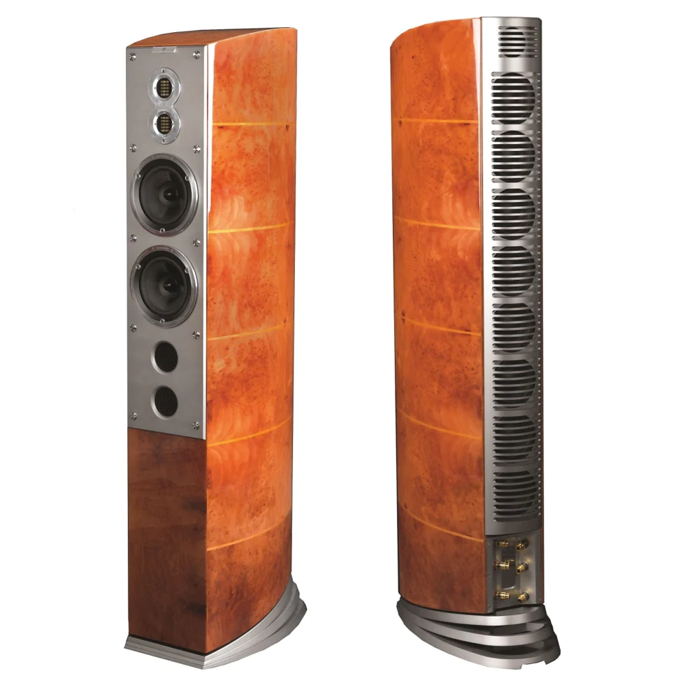Nothing is spared in either technology or finishing, from titanium to aircraft-grade aluminium. Bipolar radiation characteristics achieve a wholly superior relationship between the sound and the room. The eight ultra-linear subwoofer drivers, stunningly arranged at the rear, gives the sound an effortless weight, while never compromising on appearance.