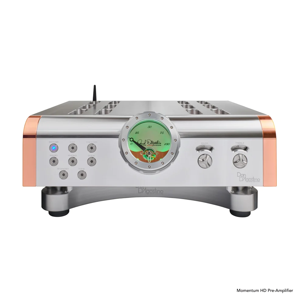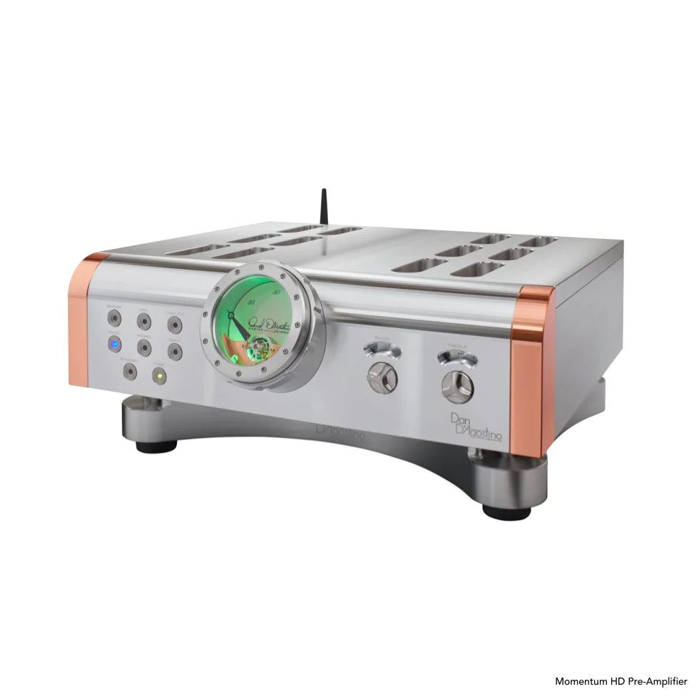 The Momentum HD Preamplifier builds on the award-winning platform of the Momentum Preamplifier. The new HD status represents the high dynamic and high definition improvements that have been achieved in this substantial upgrade. Advancements in the audio circuitry, power supply, and control sections are incorporated in the new Momentum HD Preamplifier.